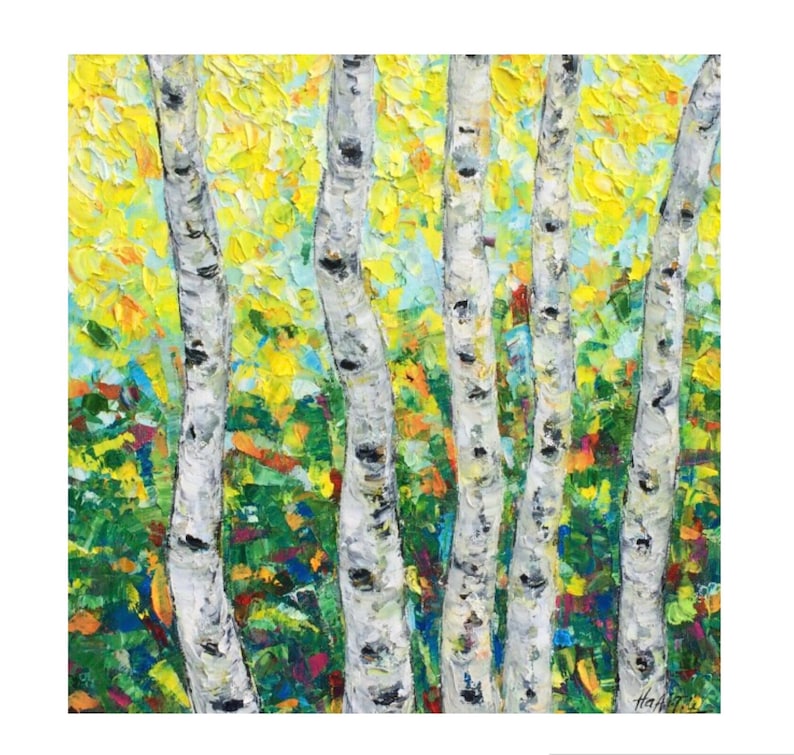 Painting For Sale Palette Knife Beautiful Birch Trees Decor 5787