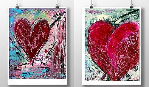 Amazon Com 2 Red Hearts 8 X 10 Each Abstract Heart Prints Of My