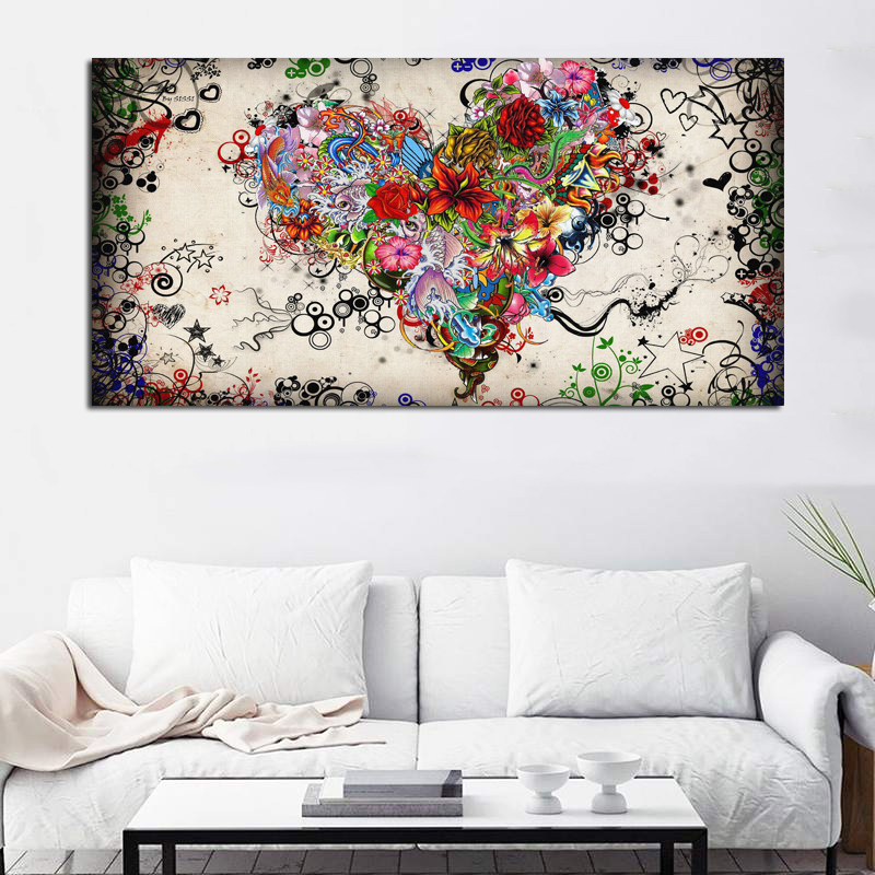 Amazon Com Vividhome Colorful Love Heart Canvas Wall Art Abstract