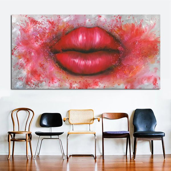 Big Sale 4a47f Frameless Hand Painted Sexy Lips Canvas Painting