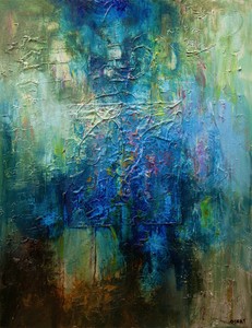 Abstract Acrylic Painting Aqua Blue Green Hues Relaxing