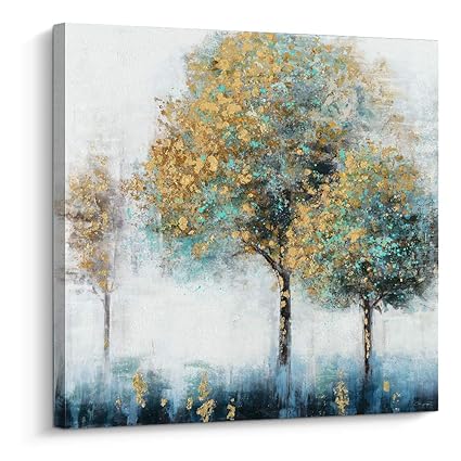 Pi Art Canvas Wall Art Abstract Shining Gold And Green Trees
