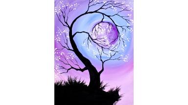 Cherry Tree Holding The Moon Step By Step Acrylic Painting For