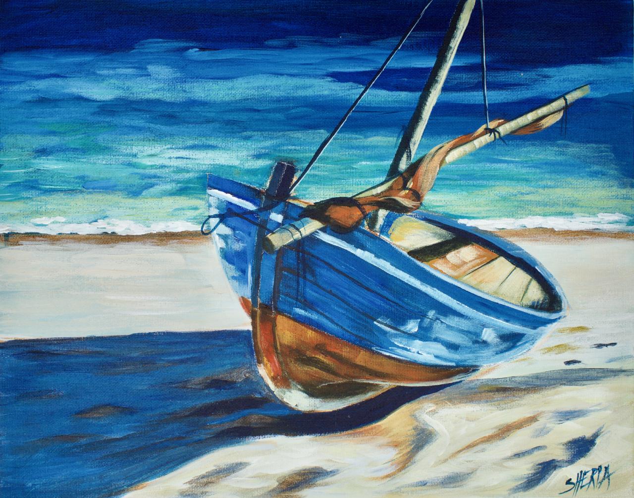 Boat On The Beach Step By Step Acrylic Painting On Canvas For
