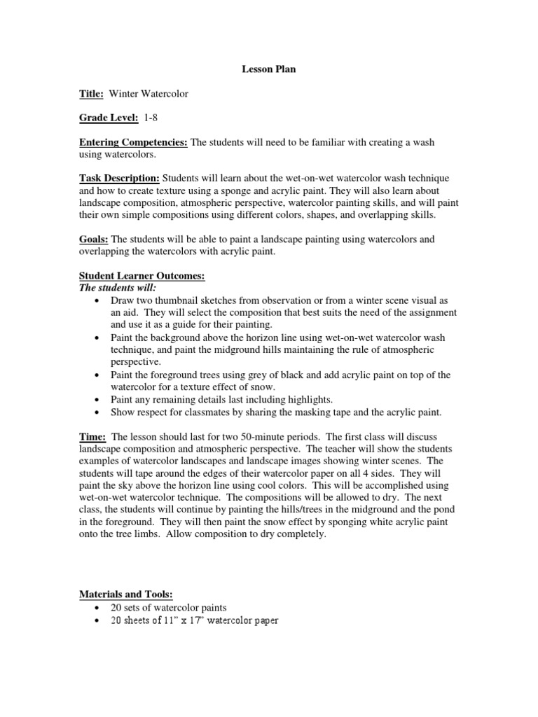 Basic Watercolor Painting Techniques Lesson Plan Worksheet Oil