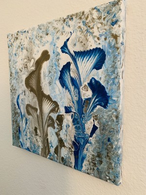 Abstract Acrylic Paint Pour Art 10x10 Ooak Sea Lillies String Pull