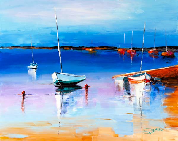 Challenge 1 Sunset Sail Boat Modern Palette Knife Painting