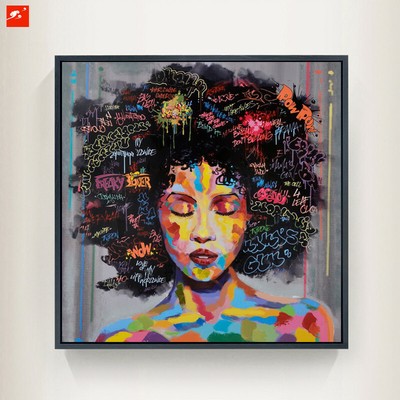 Graffiti Art Modern African American Woman Portrait Canvas Oil