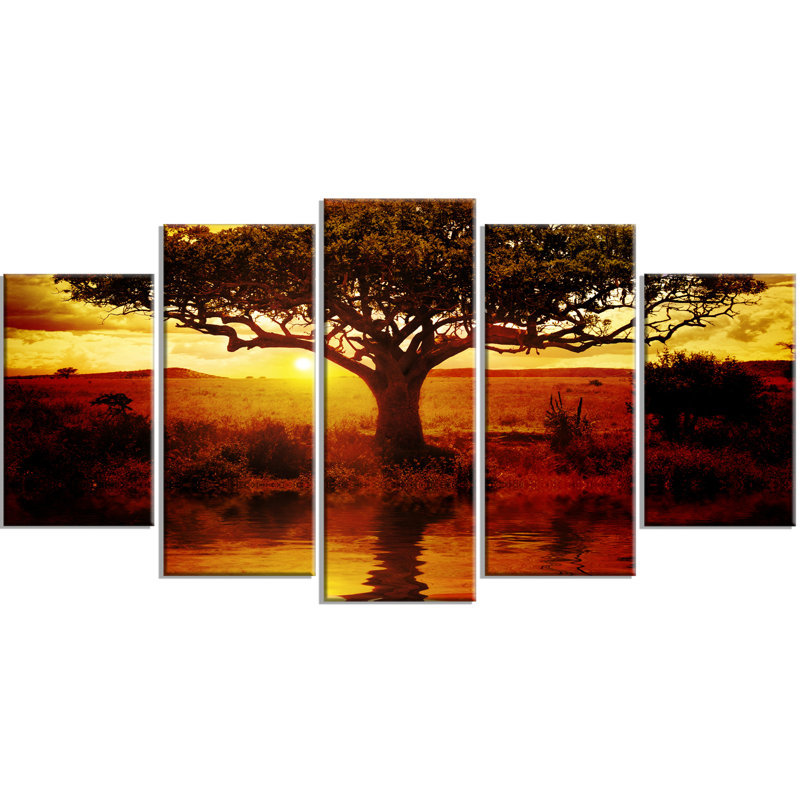 China 5 Panels African Sunset Canvas Painting Wallpaper China